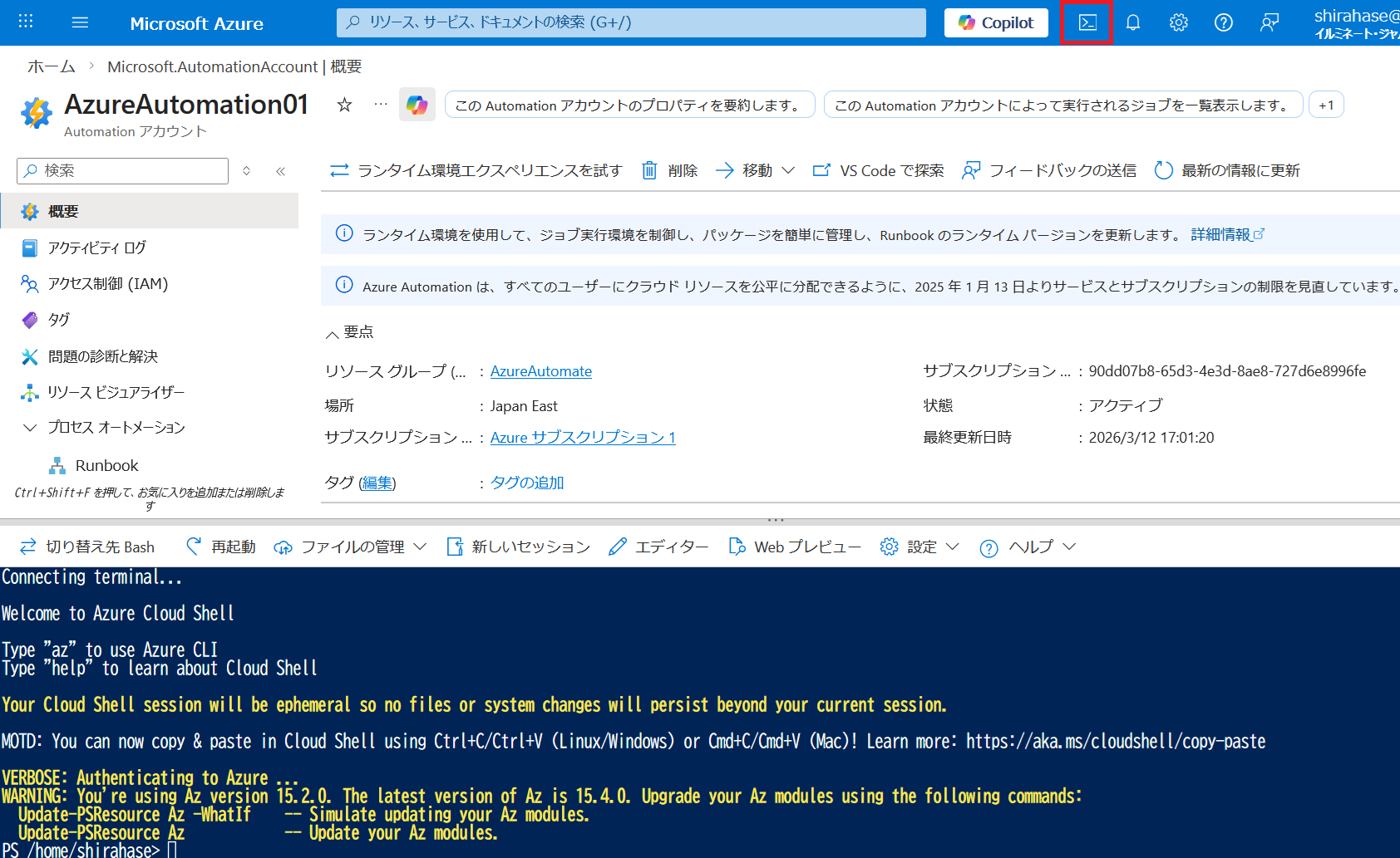 1. Automation アカウントの作成
