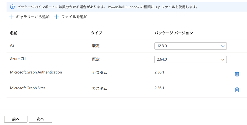 - 同様の手順で 「Microsoft.Graph.Sites」 を追加し、[次へ] をクリックします。