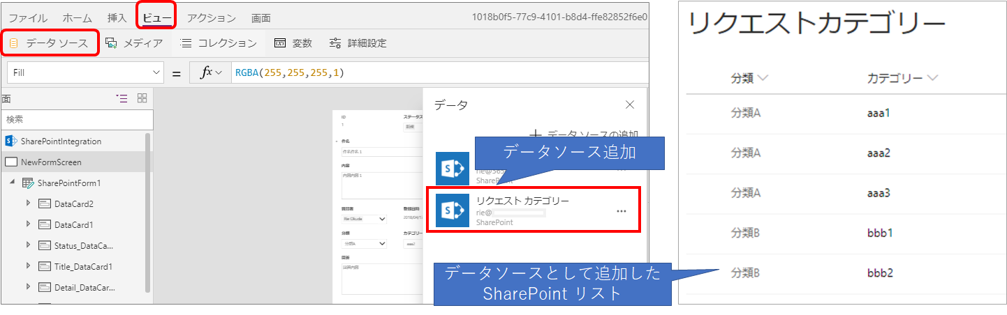 1.まず選択肢内容が含まれるデータソースを追加します。